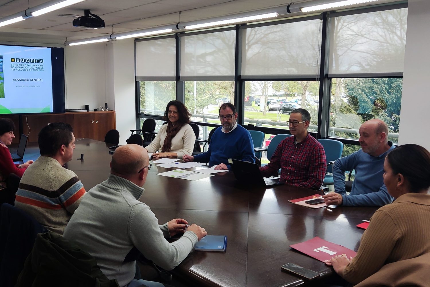 El jueves 26 de marzo se celebró la Asamblea General Ordinaria de la Entidad Urbanística de Conservación del Parque Tecnológico de Asturias (EUCPTA). Durante la sesión se aprobaron por unanimidad las cuentas y el resultado del ejercicio 2025, y se procedió a la renovación del 50% de los vocales de la Comisión Delegada, así como de los cargos de Presidencia, Tesorería y Secretaría.
