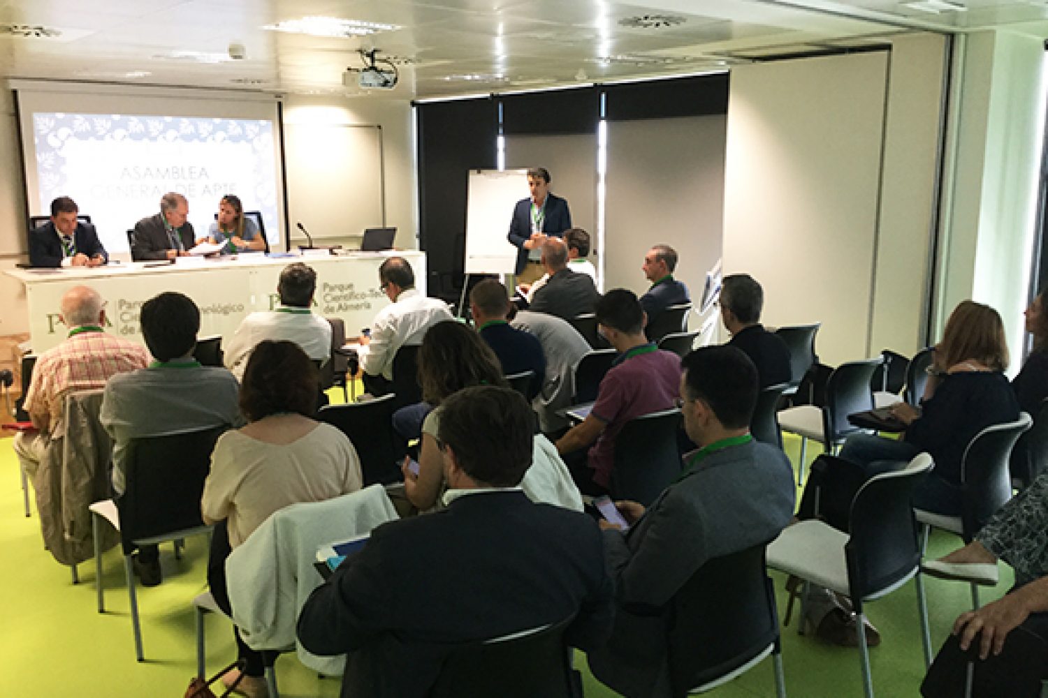 Una treintena de representantes de parques miembros de APTE, entre los que se encuentra el Parque Tecnológico de Asturias, se han reunido esta tarde en el Parque Científico-Tecnológico de Almería (PITA) para celebrar la segunda Asamblea General de la Asociación. Antonio Domene, director del PITA y Felipe Romera, presidente de APTE, han sido los encargados de dar la bienvenida a los asistentes.